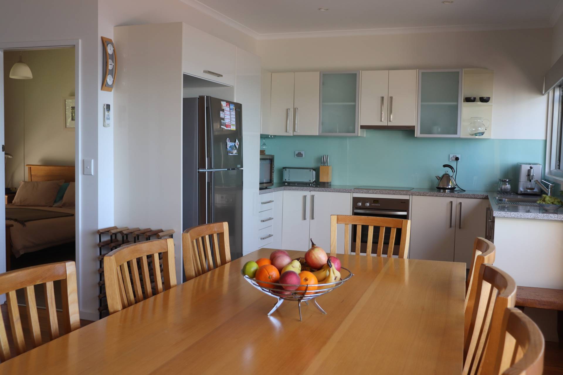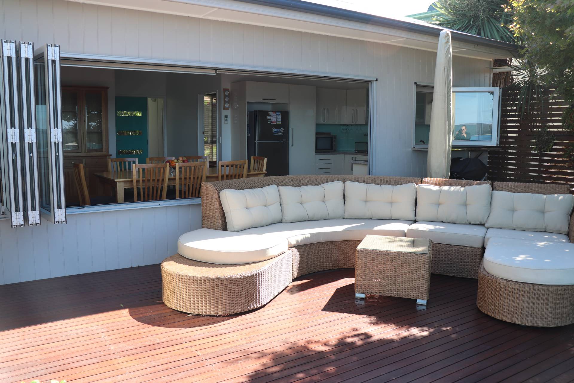 The home has a slow combustion fire and air conditioning to keep you comfortable all year through.  The kitchen has room to move with dishwasher and window servery to balcony when barbequeing.  All three bedrooms have built in bedrooms.