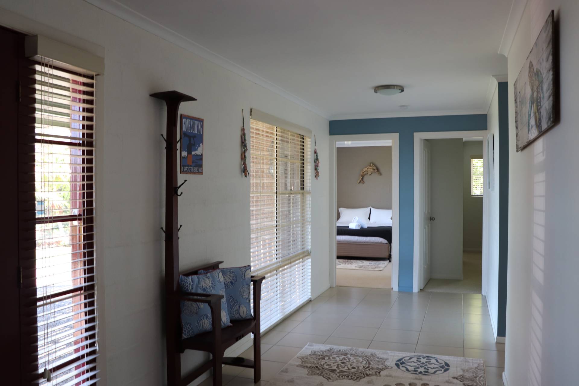 Queen bed in the main bedroom, queen in the second and a queen and single in the third bedroom