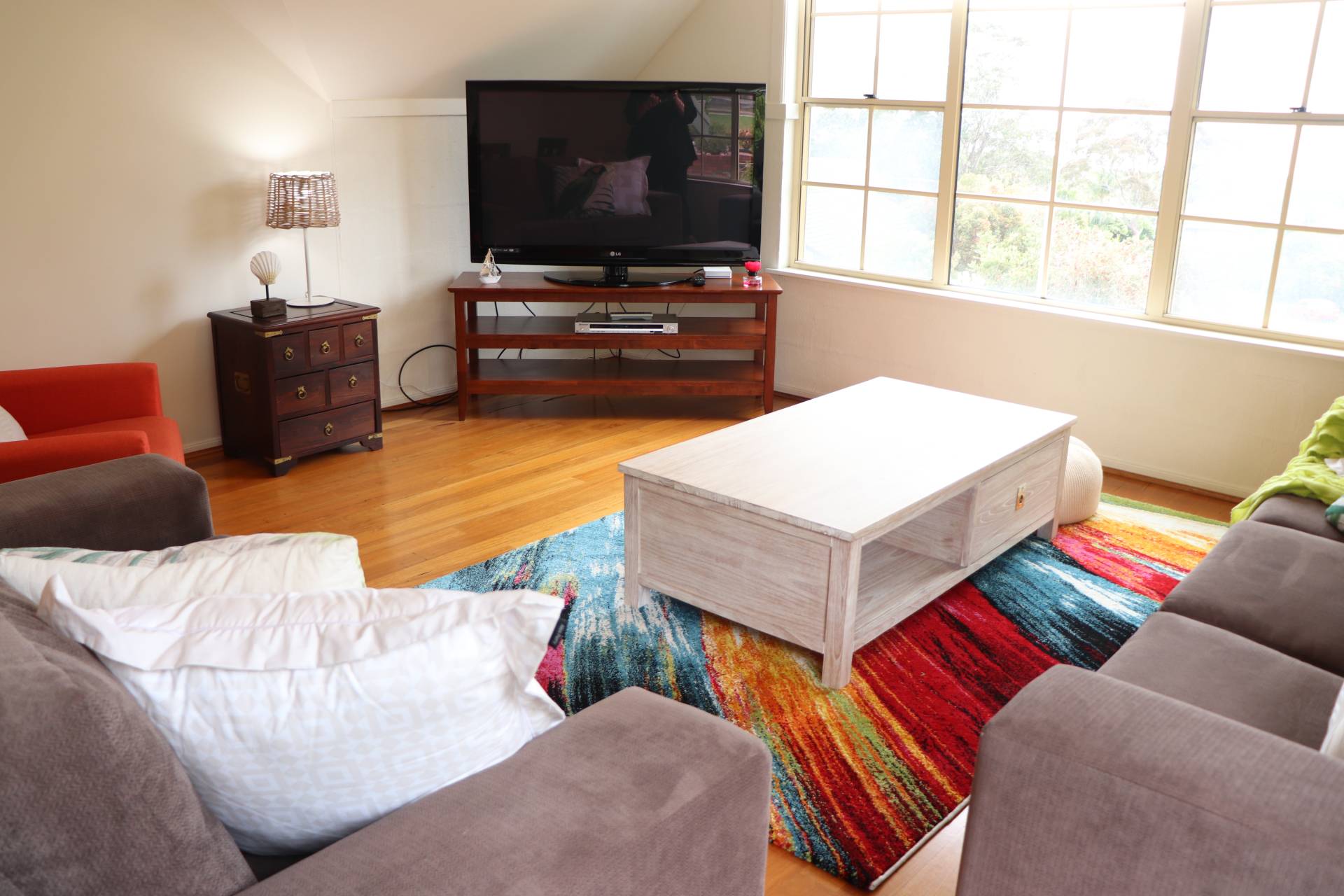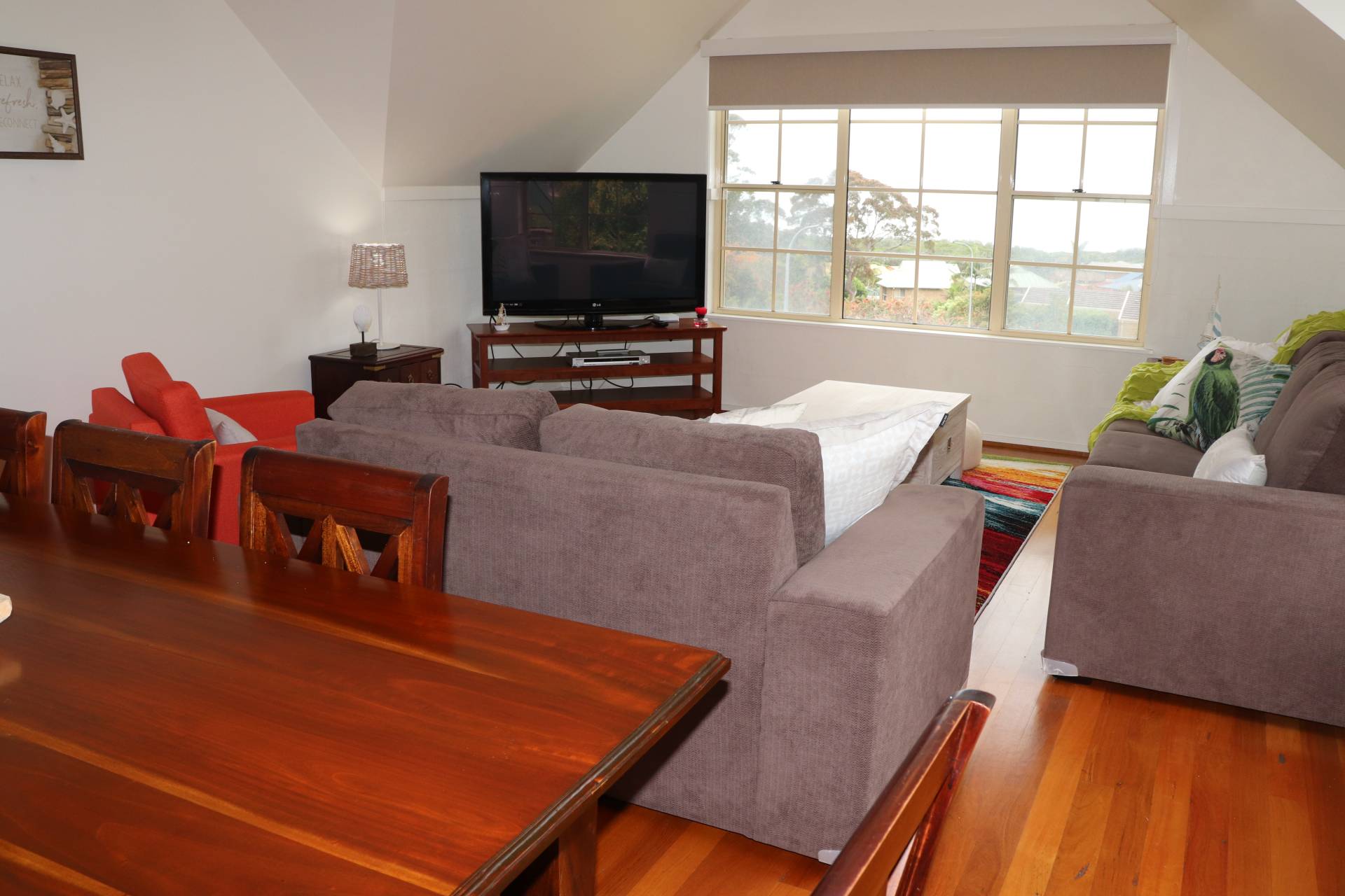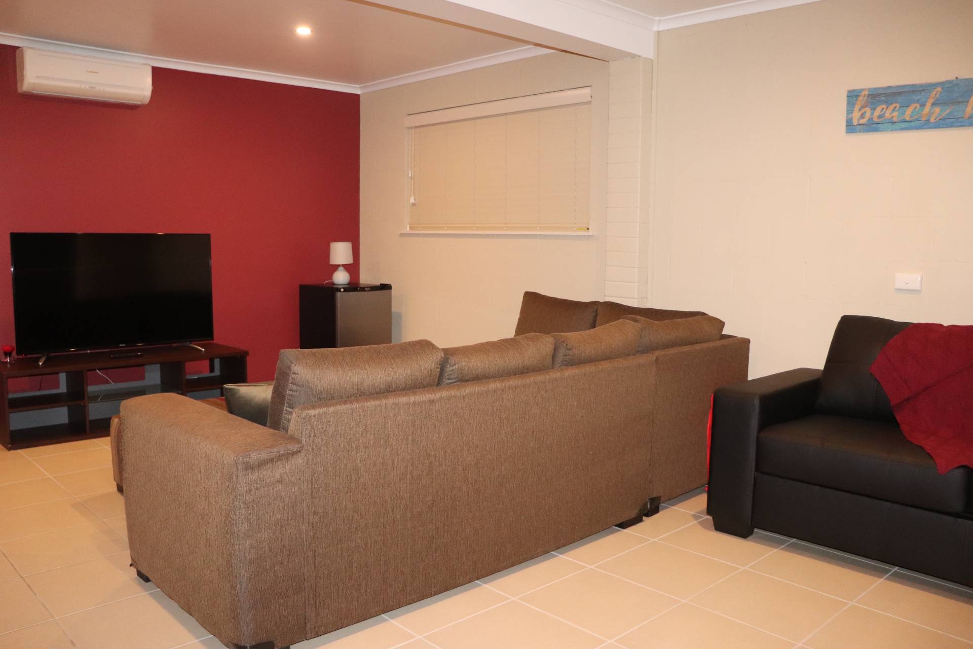 Rumpus room with tv and air conditioning