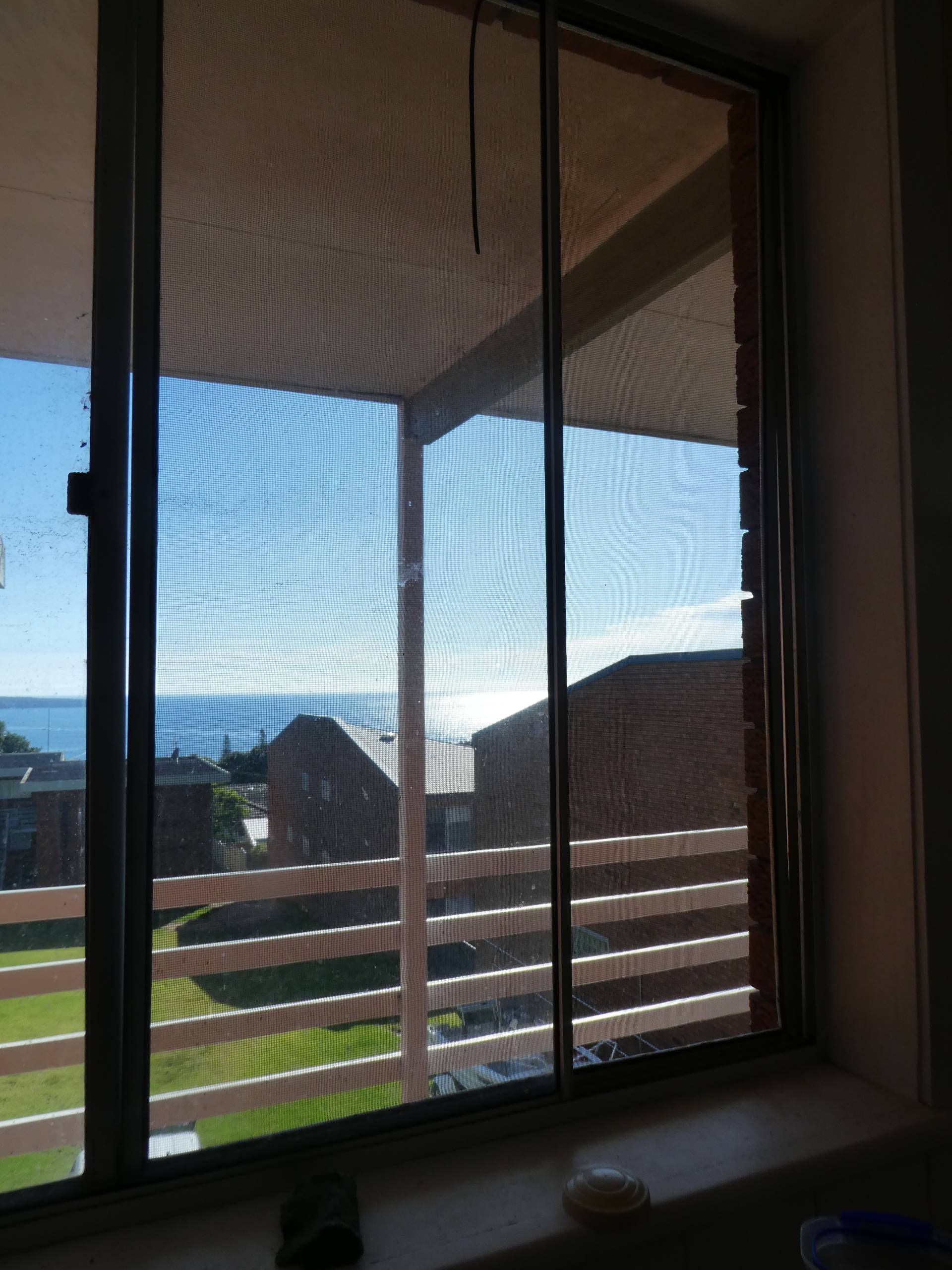 Balcony off lounge room with water views.