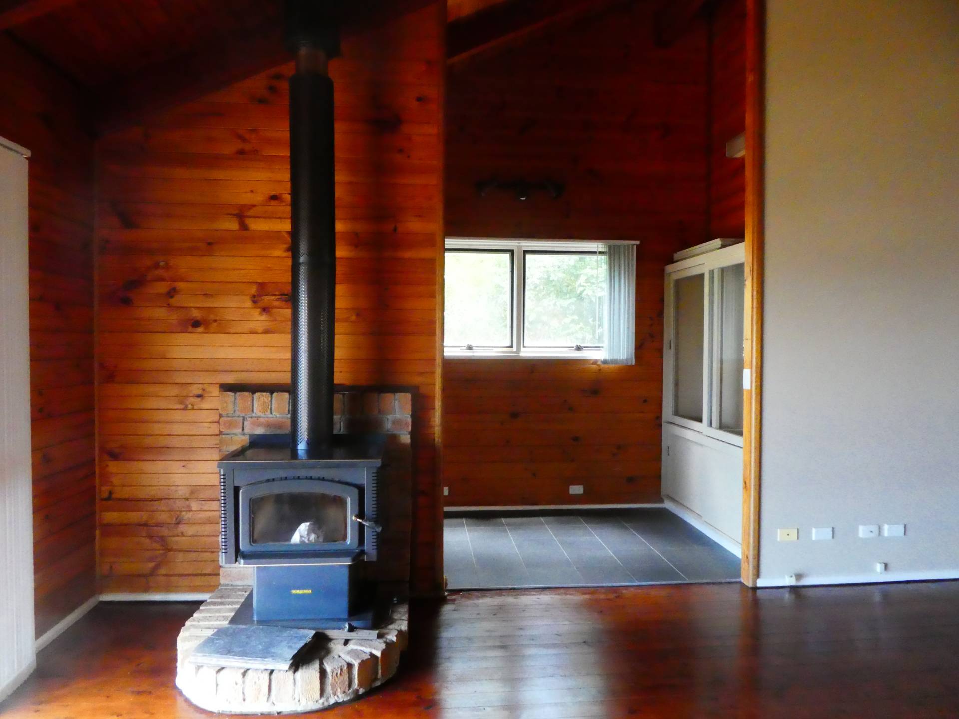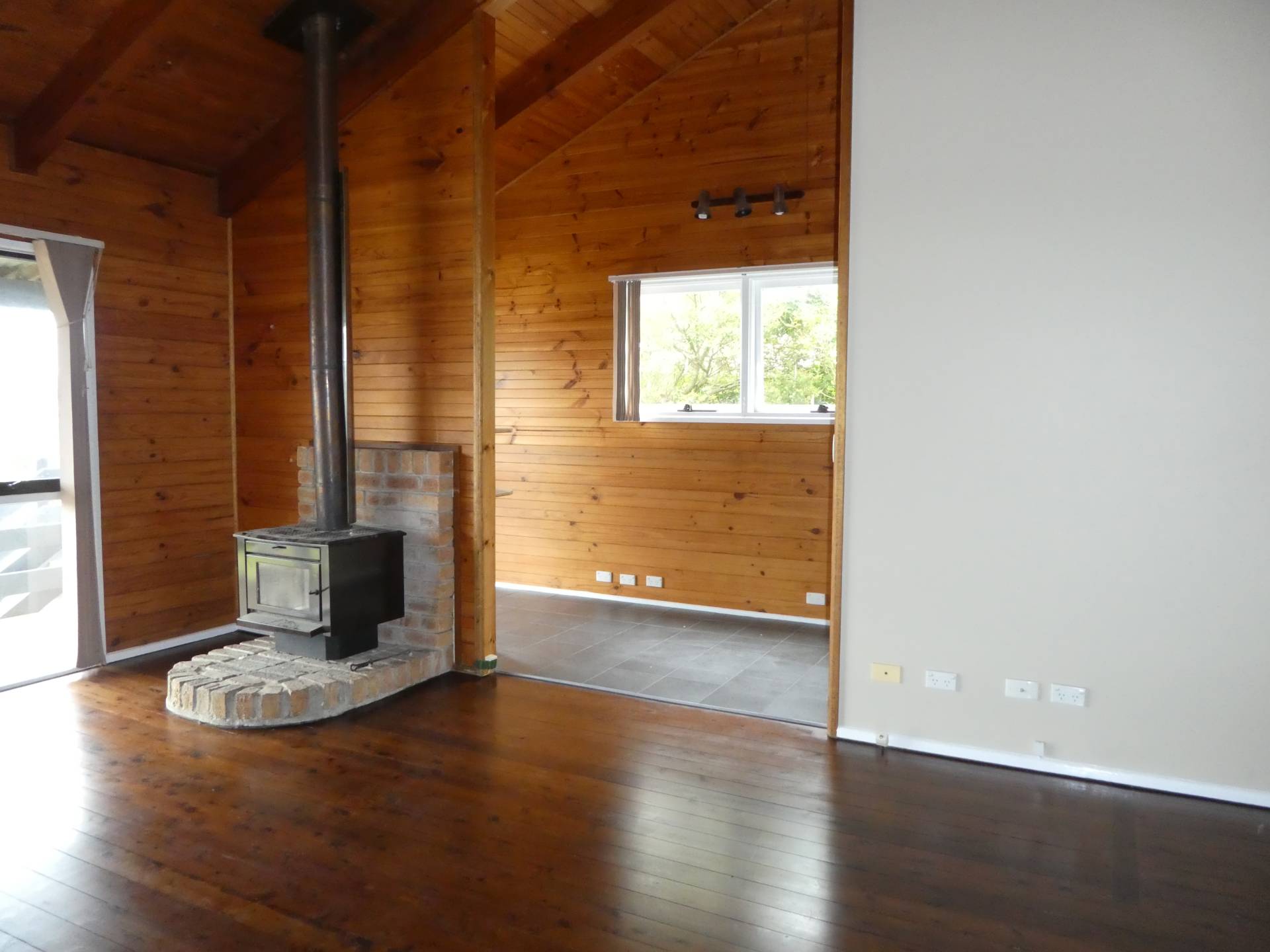 The property has a slow combustion fire, wood floors and water views from the front verandah.