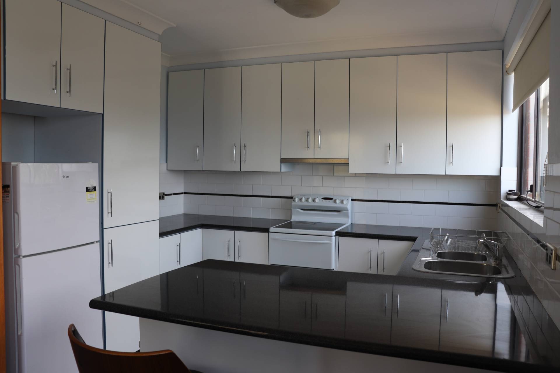 The unit comes partly furnished with bed, futon sofa, dining table/chairs, washing machine and fridge just to get you started.